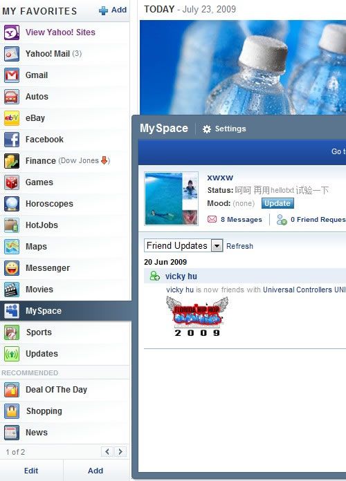 所以為了凸顯門戶網(wǎng)站的搜索特性,所以上面說道搜索部分采用了新的設(shè)計。而為了凸顯門戶網(wǎng)站目錄的特性,雅虎這次改版也從新設(shè)計了左側(cè)導(dǎo)航。左側(cè)導(dǎo)航不僅可以自定義雅虎本身提供的服務(wù),還可以自定義當下其它站點的服務(wù),譬如ebay,facebook,mysapce等。而這次雅虎最關(guān)鍵的一點不僅是解決定制的問題,而且還試圖解決信息問題。就是說不僅希望用戶可以自定義網(wǎng)站目錄,而且還可以在上面處理這些站點的信息。