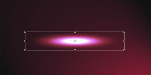 復制剛在制作的光效圖層(Ctrl+J),隱藏原始層。之后會用這層制作更多的光紋?,F(xiàn)在,比例縮放(編輯》變換》縮放)(Ctrl+T)光效層使其扁平。這樣做可以控制光紋的粗細。